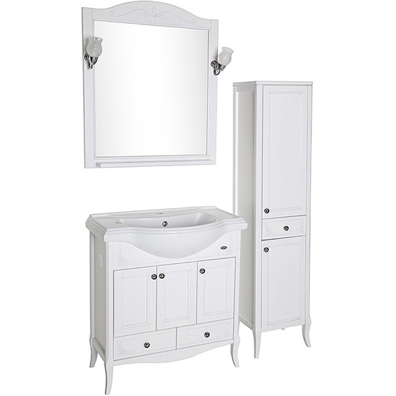 Зеркало с полкой и светильниками ASB-Woodline Салерно 80 см белый 9691