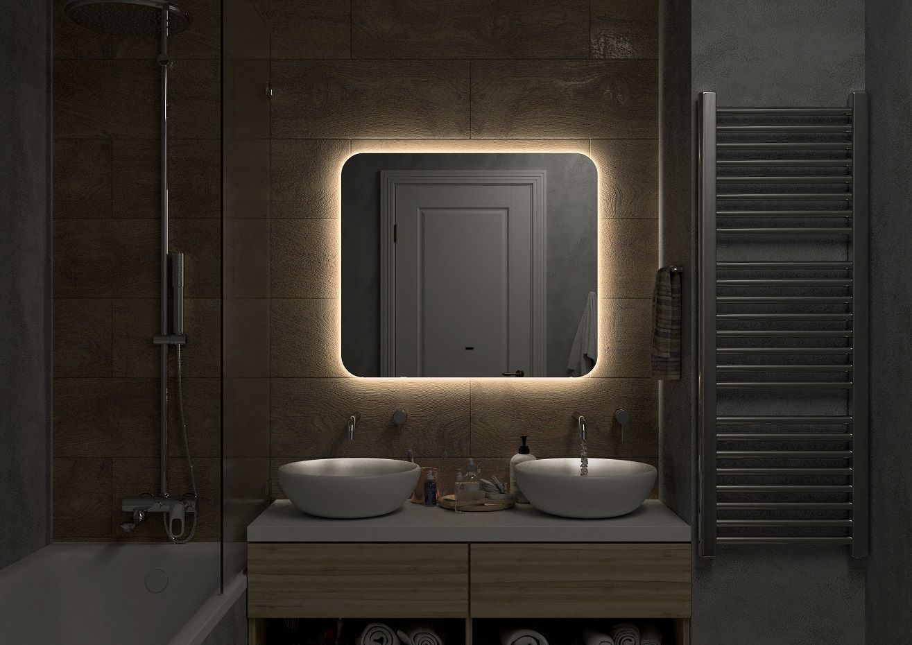 Зеркало с теплой подсветкой Art&Max Ravenna 80х70 см AM-Rav-800-700-DS-C
