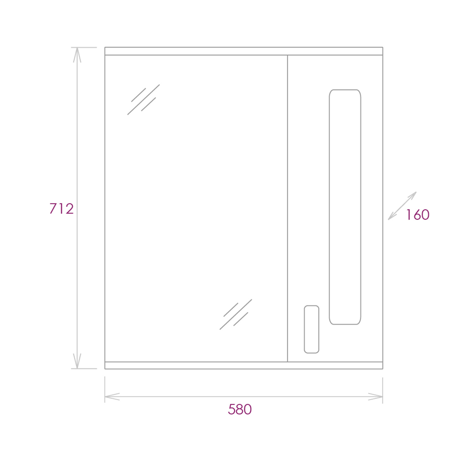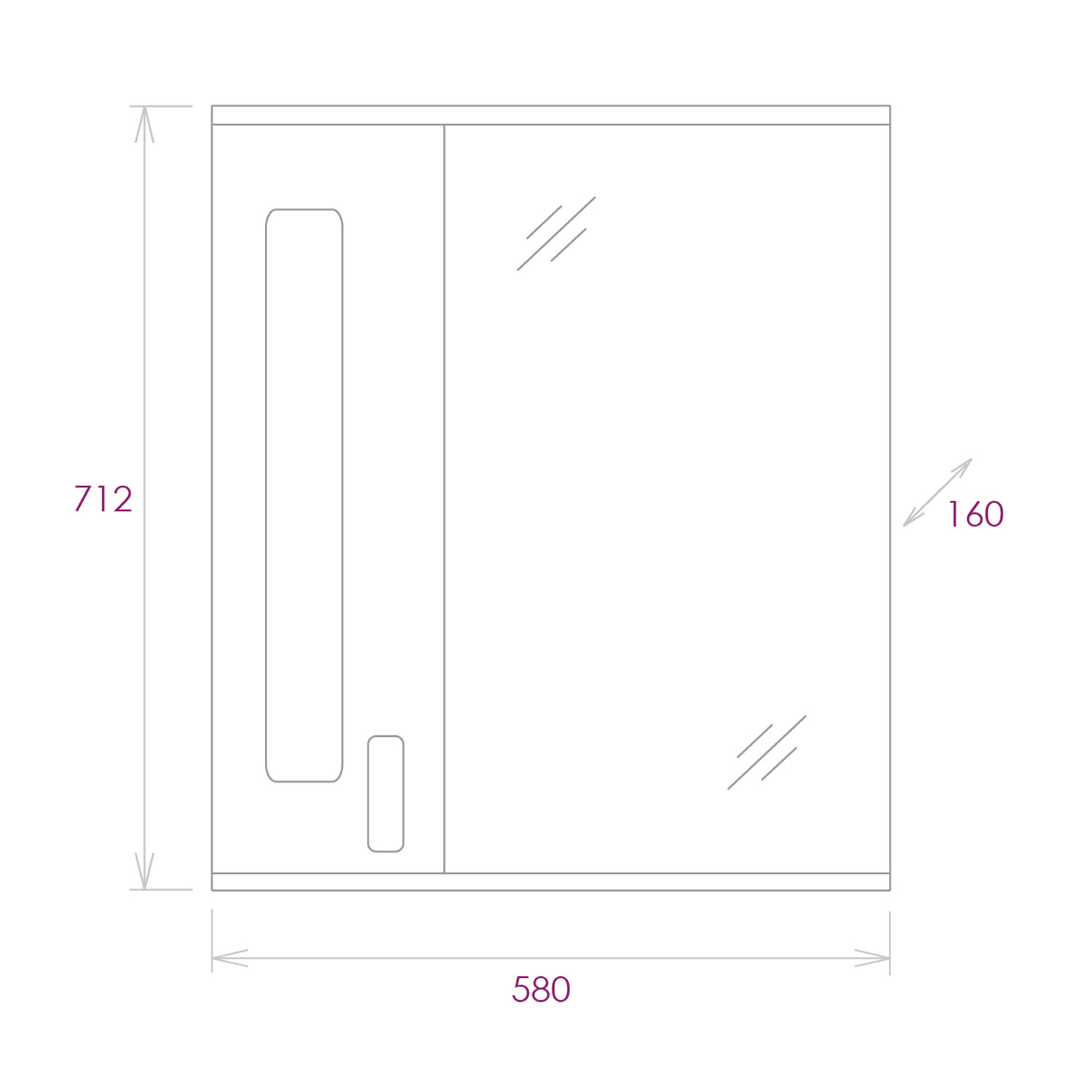 Шкаф-зеркало c подсветкой Onika Кристалл L/R 58х71,2 см белый