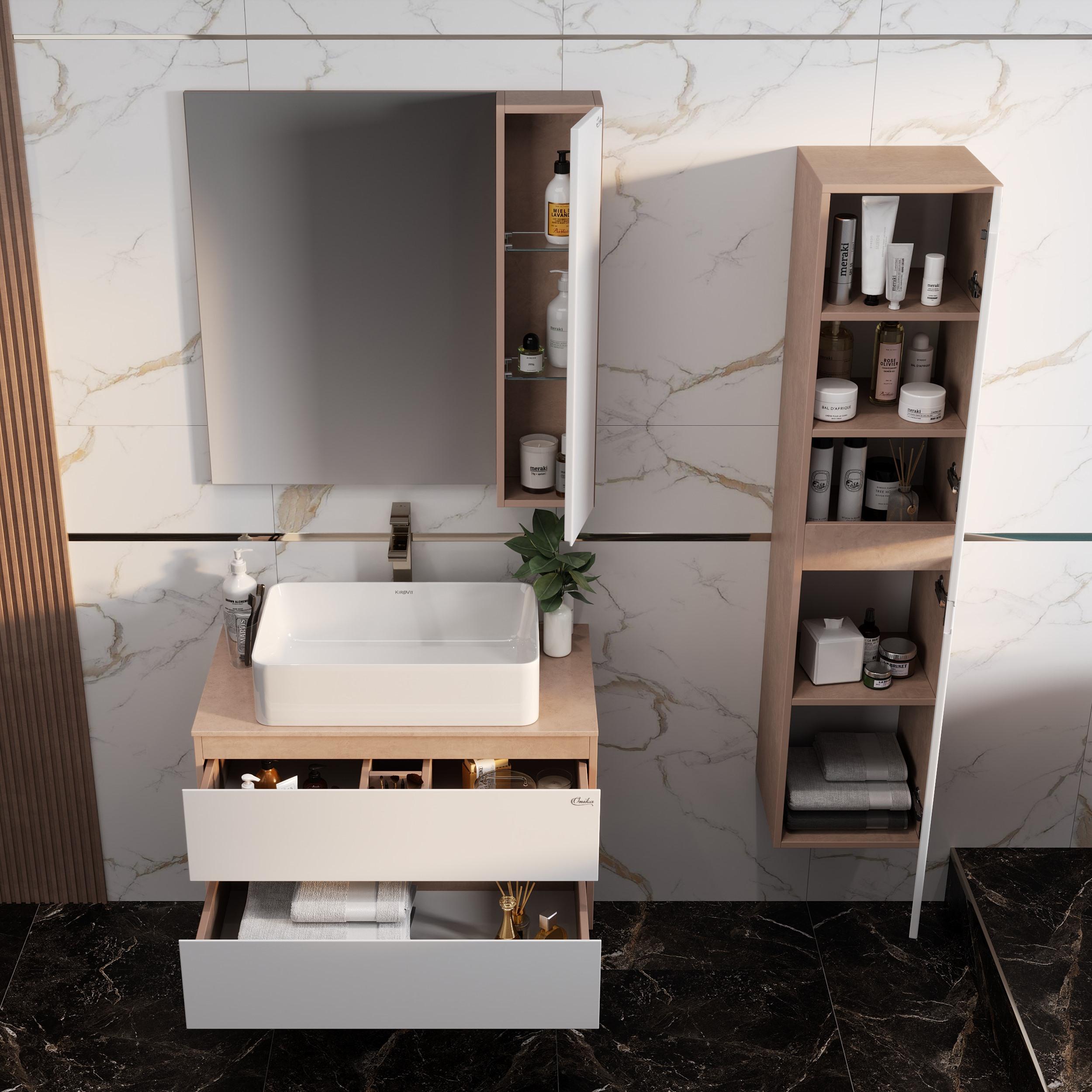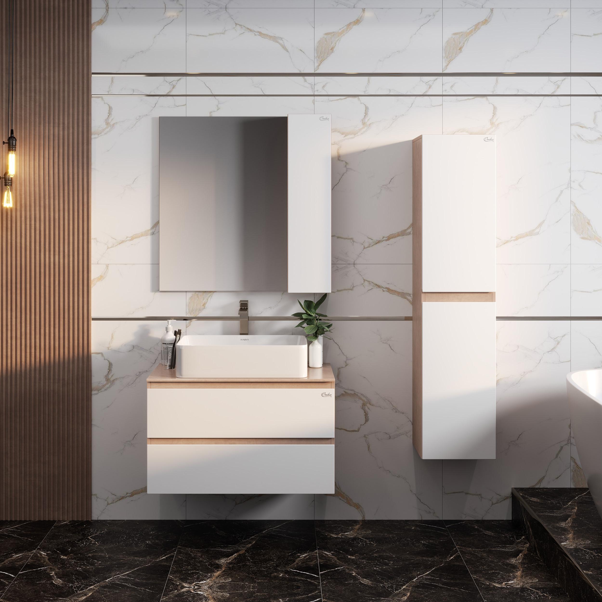 Шкаф-зеркало Onika Алеста 80х81,6 см белый/камень светлый 208095