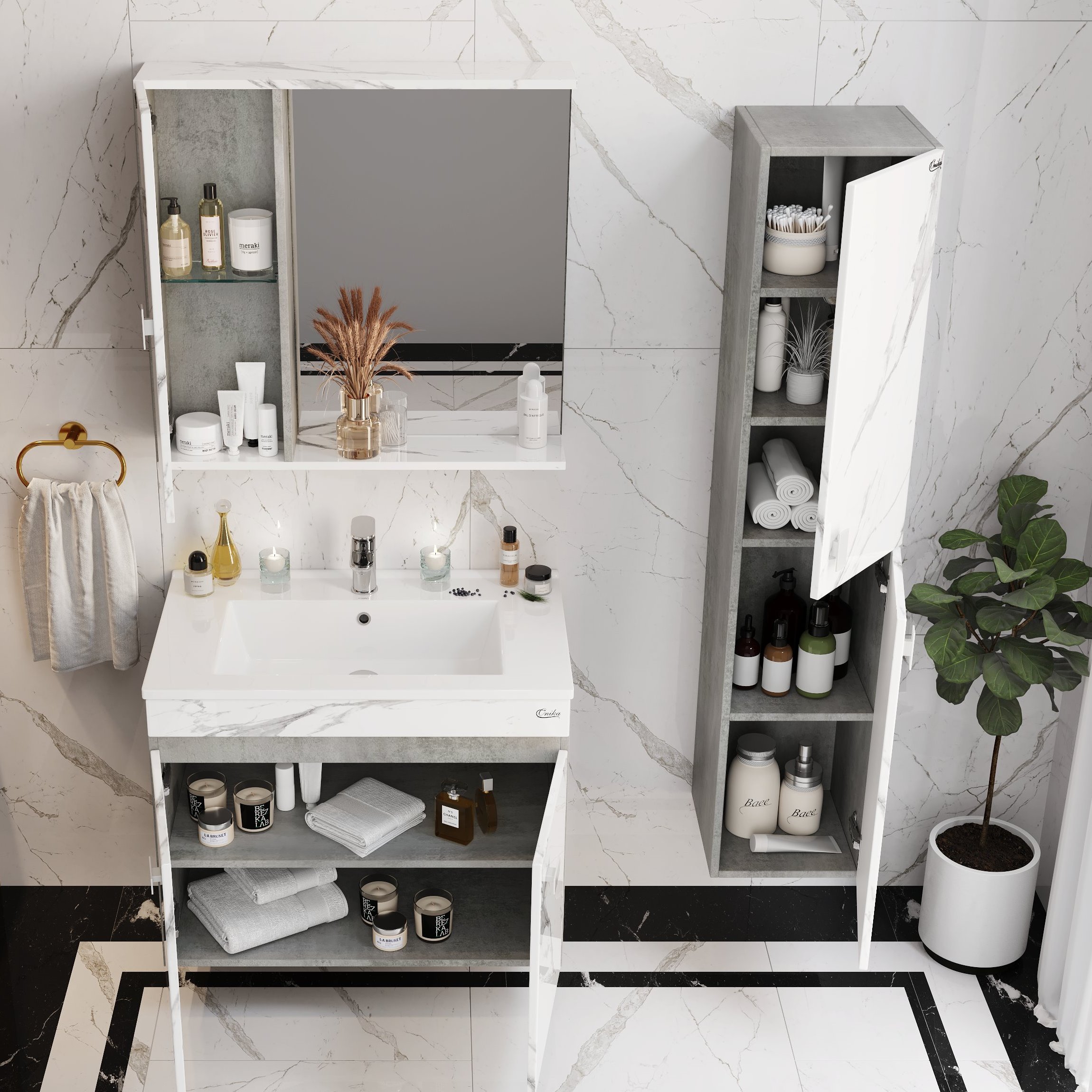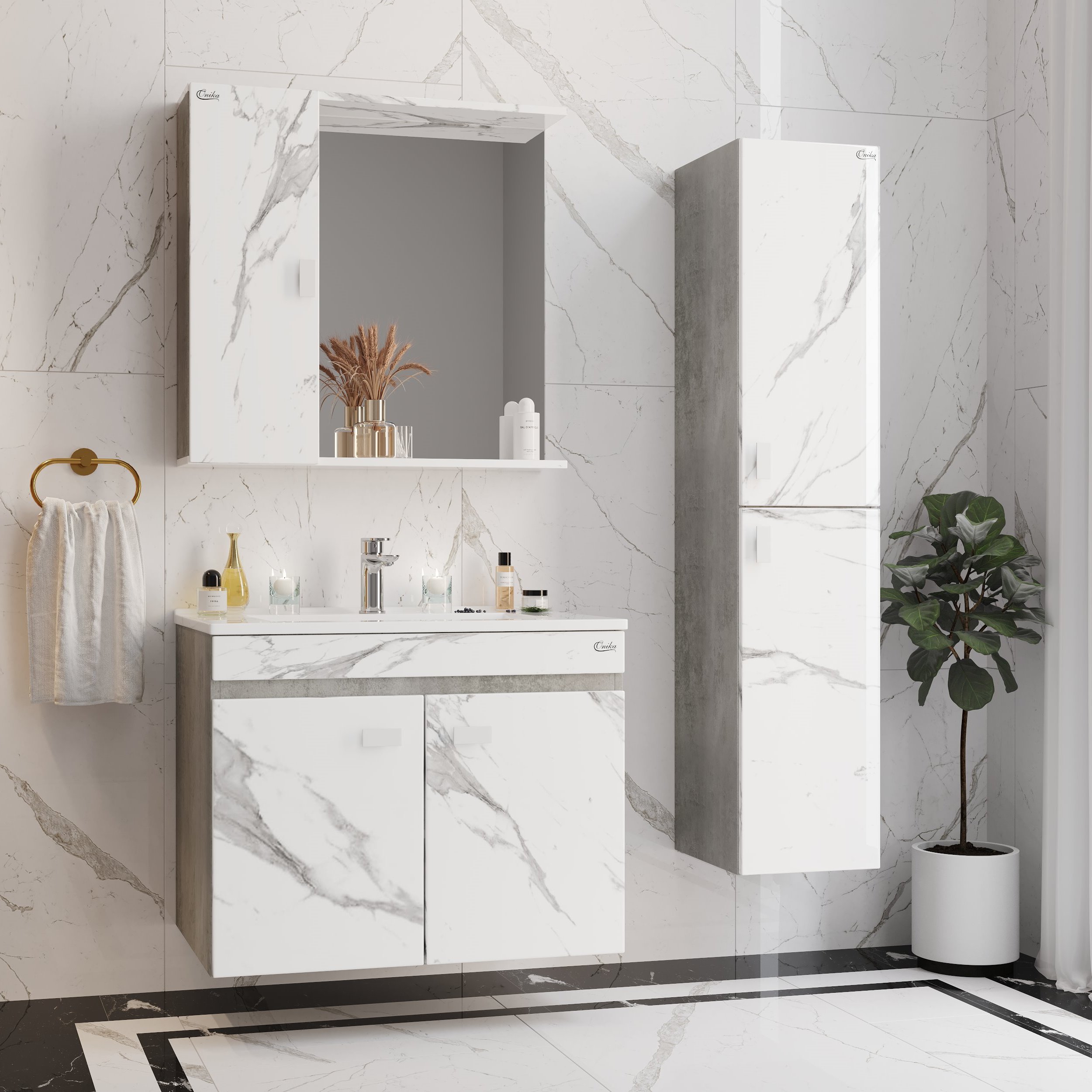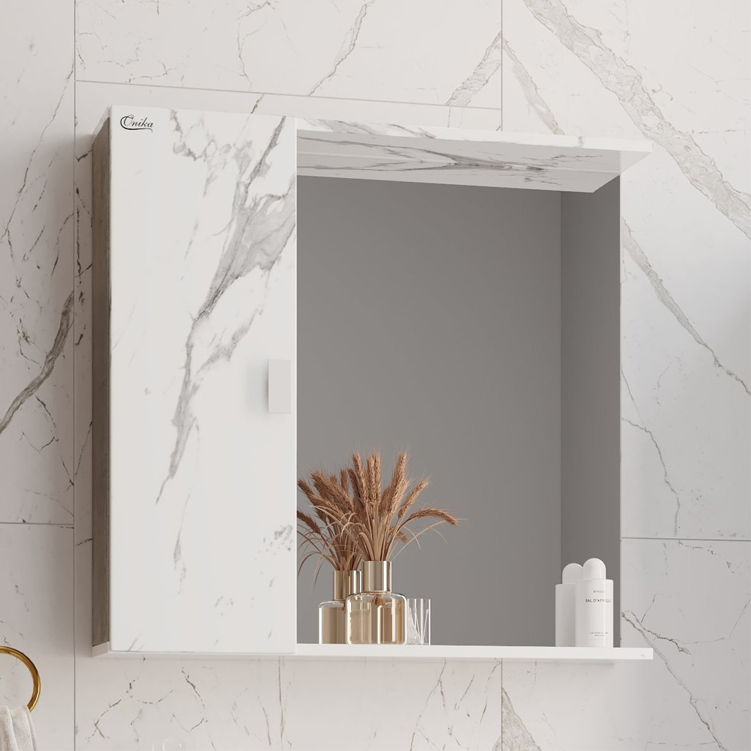 Шкаф-зеркало Onika Марбл 75х71 см мрамор/камень бетонный 207524