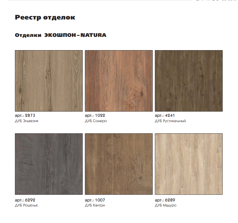 | Покрытие | Отделки реестра Экошпон NATURA |