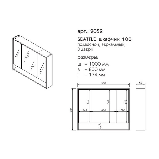 Зеркальный шкаф Caprigo 2052 (100х80см) цвета разные