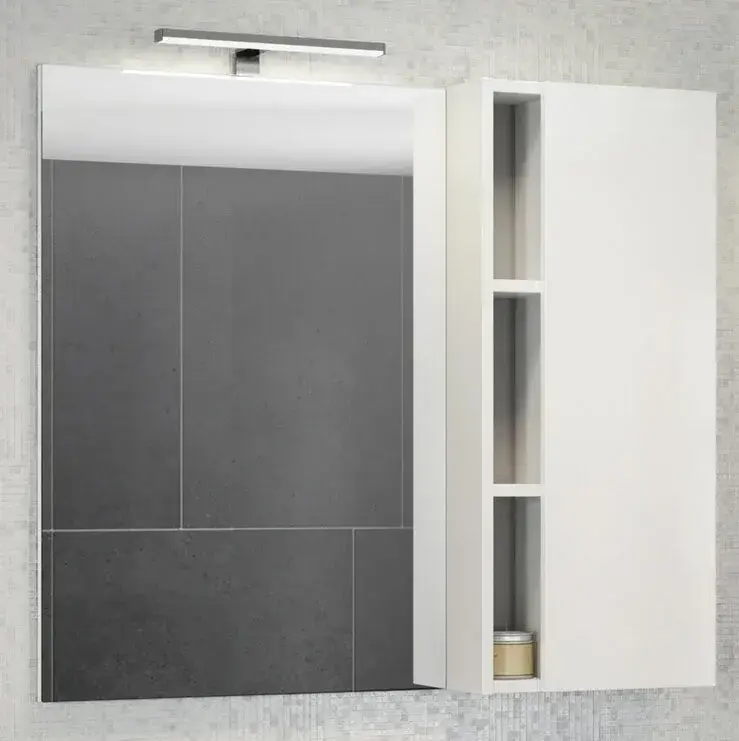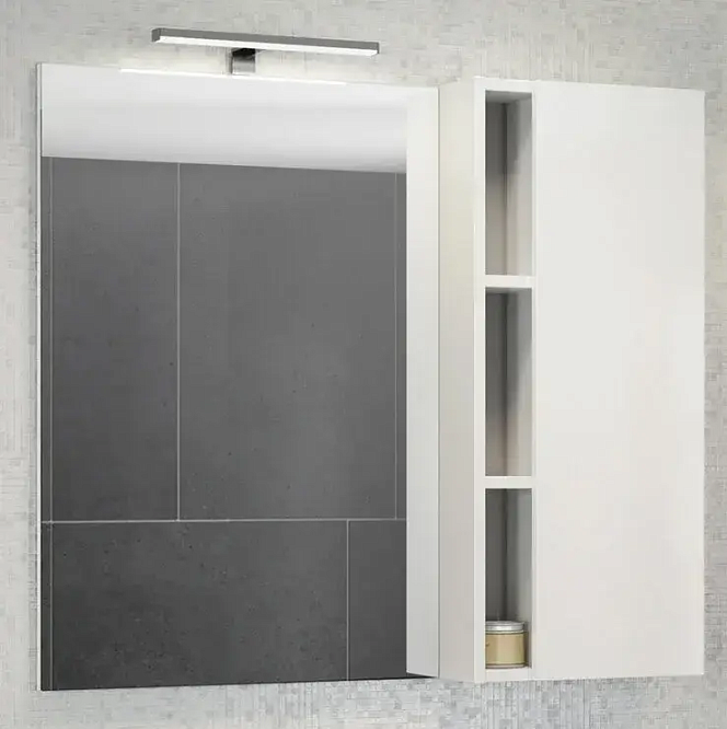 Зеркальный шкаф Comforty Милан 90. Зеркальное высококачественное полотно с амальгамой на основе серебра. Створка мебельного элемента оснащена петлями с плавным закрыванием. За дверцей одна горизонтальная полка.