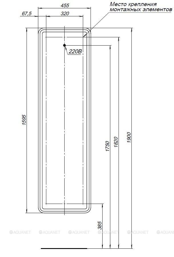 Зеркальный шкаф-пенал с LED-подсветкой Aquanet Оптима 45х160 см 335438