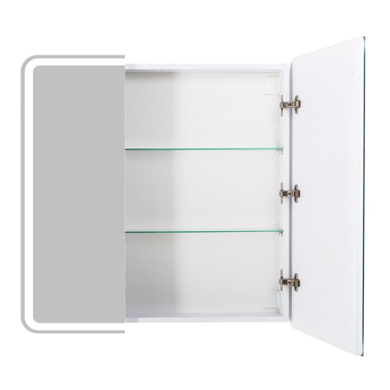 Дополнительная информация: зеркальный шкаф оснащен встроенной подсветкой по периметру и сенсорным выключателем