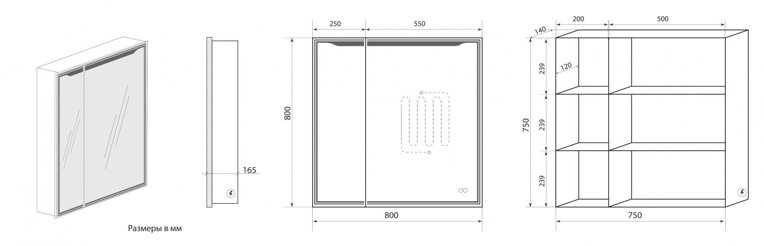 Зеркальный шкаф с подсветкой и подогревом Art&Max Merano 80х80 см L/R AM-Mer-800-800-2D-L-DS-F