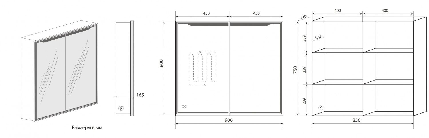 Зеркальный шкаф с подсветкой и подогревом Art&Max Merano 90х80 см L/R AM-Mer-900-800-1D-L-DS-F