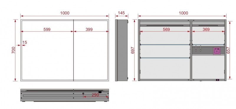 | Оснащение | Подогрев, Подсветка, Розетка |