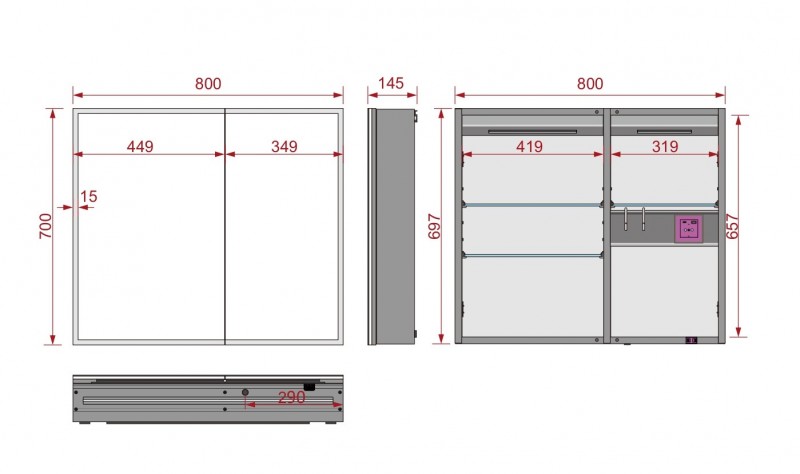 | Оснащение | Подогрев, Подсветка, Розетка |