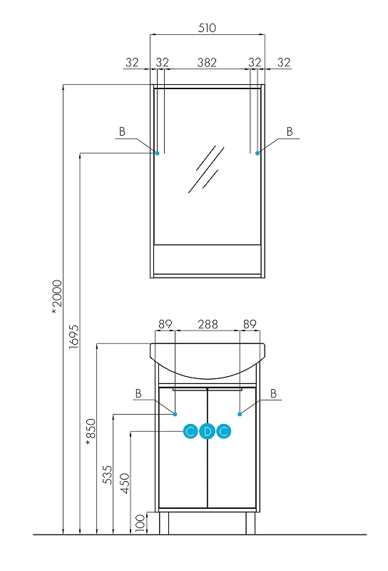 | Система хранения | 1 дверца с доводчиком, 2 полки |