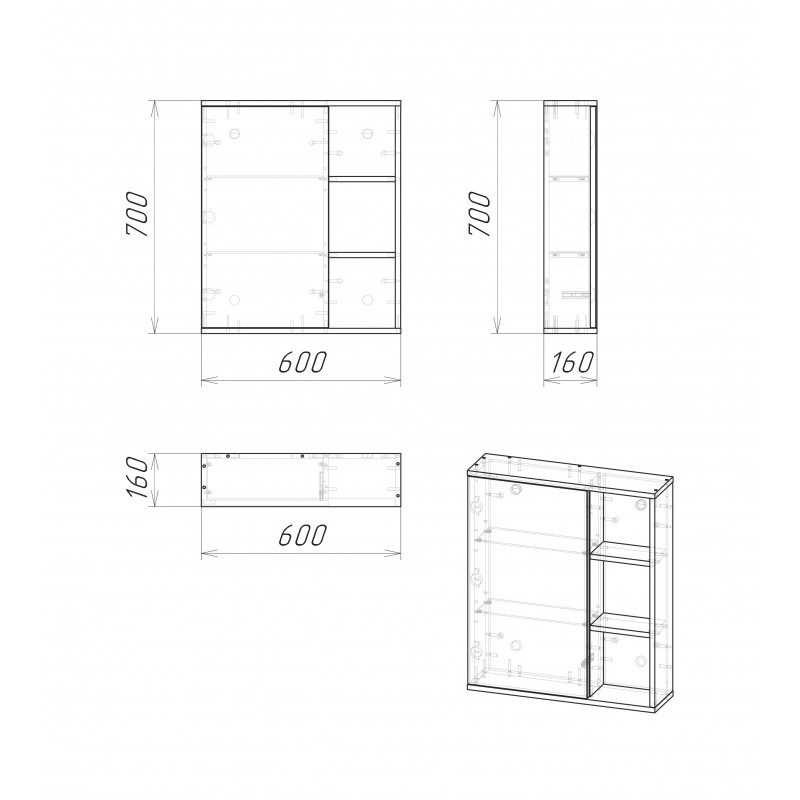 | Особенности | Распашная дверца, открытые полки |