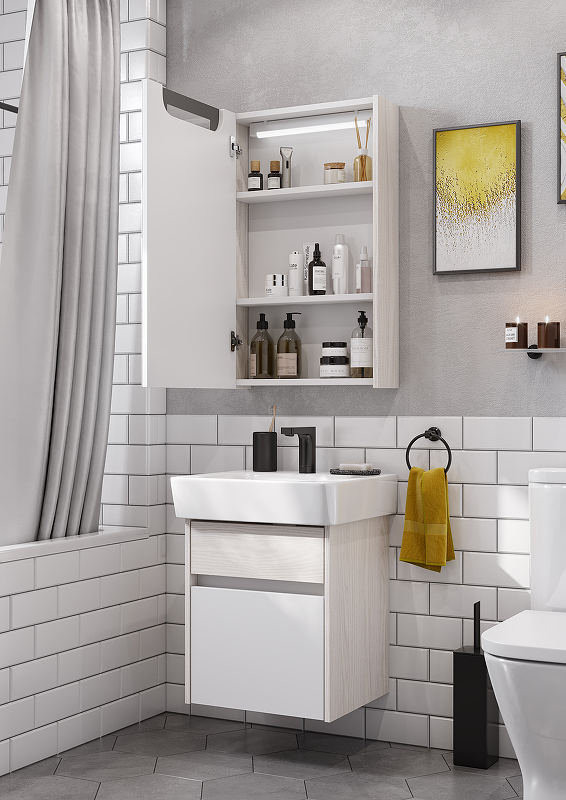 Зеркало-шкаф с подсветкой Aquaton Верди 50 см белый/ ясень фабрик 1A195802VDAV0