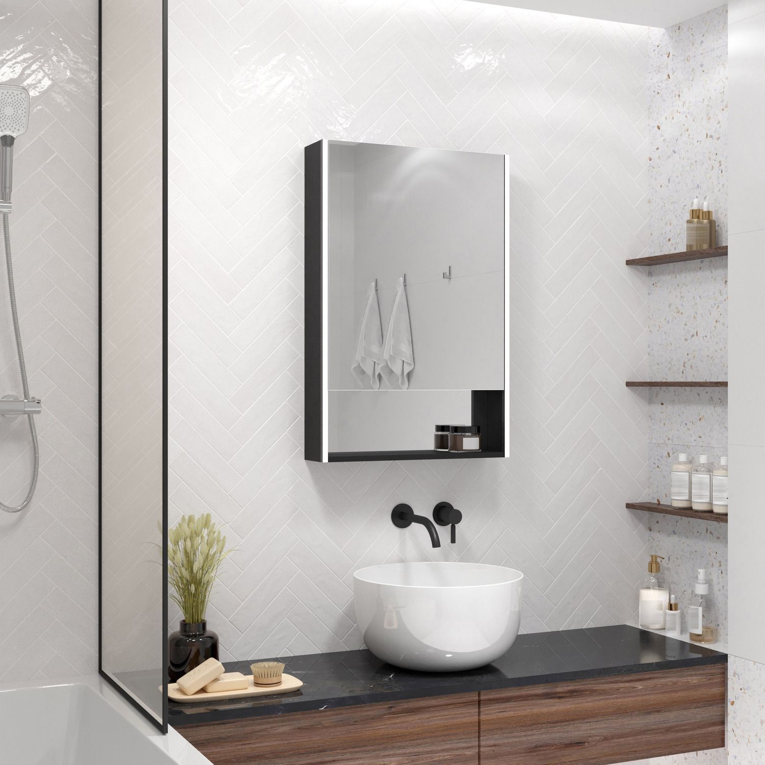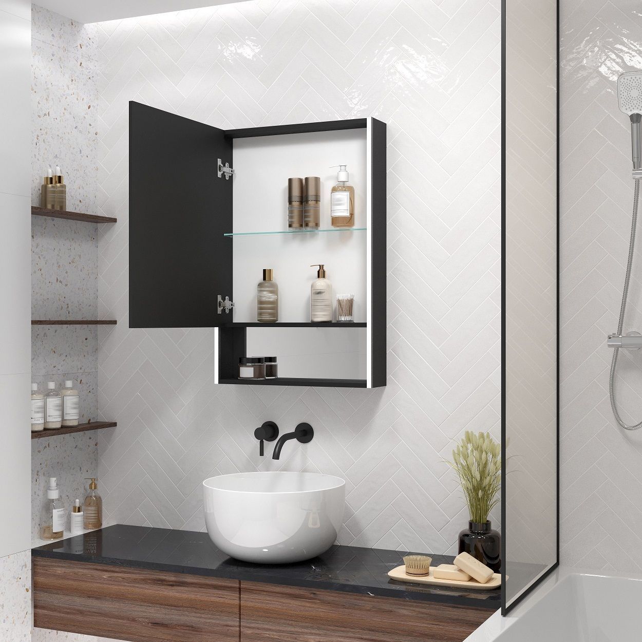 Зеркало-шкаф с подсветкой Art&Max Foggia 50х80 см Nero Matt L/R