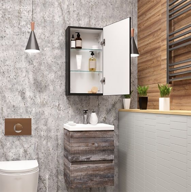 Зеркало-шкаф с подсветкой Art&Max Techno 35х65 см черный AM-Tec-350-650-1D-L-DS-F-Nero