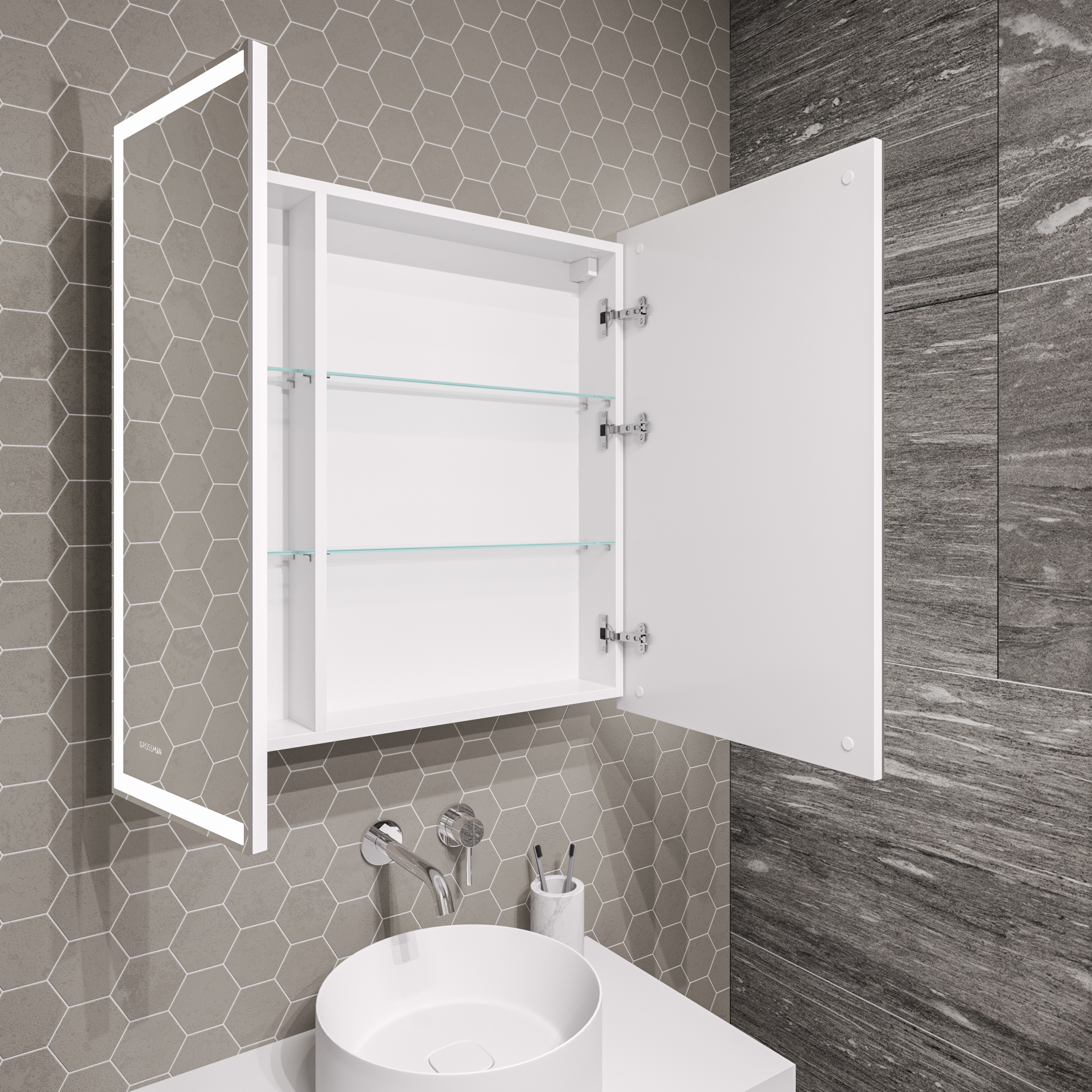 Зеркало-шкаф с подсветкой Grossman Меркадо 70х80 см 207008