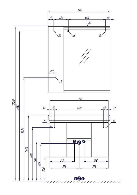 | Оснащение | LED 6 Вт , навес 2 шт, шкафчик слева |
