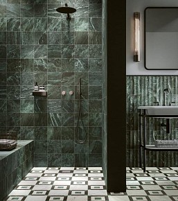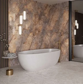 - Лаппатированная и сатинированная. Сочетают в себе преимущества матовой и глянцевой плитки. С одной стороны, отличаются мягким глянцем, а с другой, нескользящей структурированной текстурой. Хорошо походят как для стен, так и для пола.